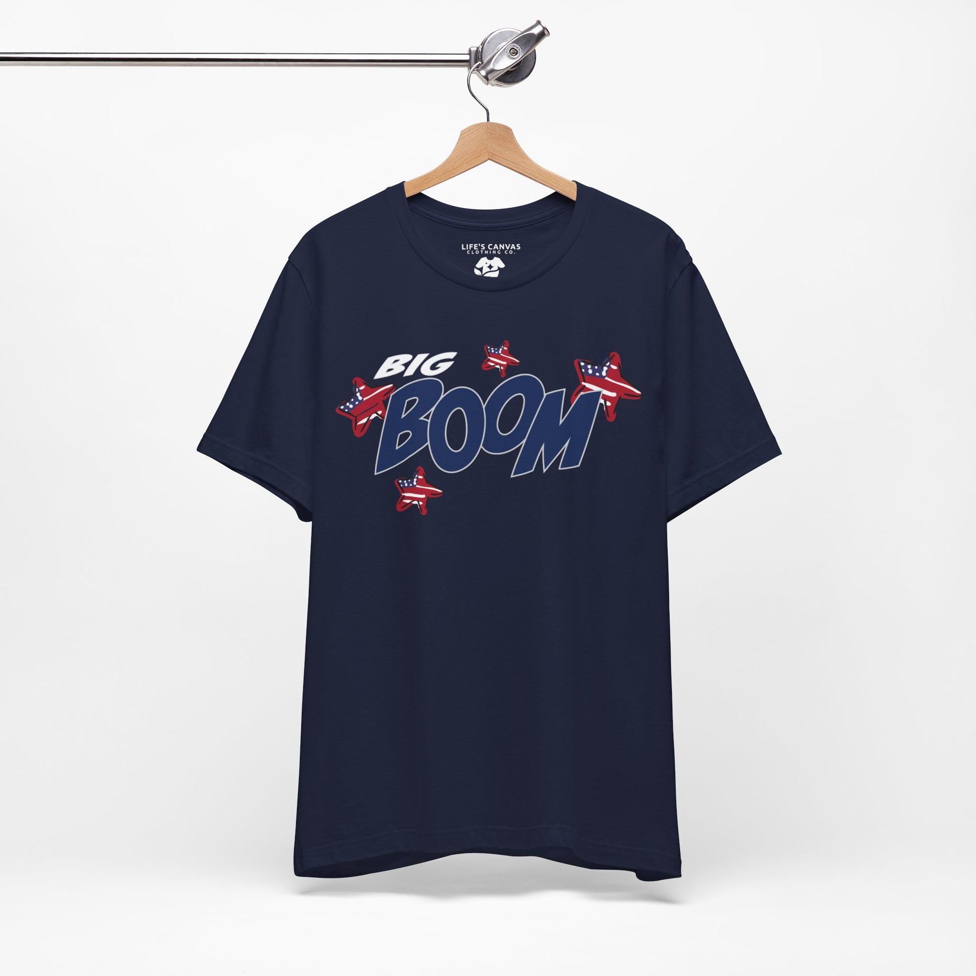 The Big Boom tee is for those who naturally command attention—quietly confident, casually cool, and always the spark that starts the celebration. With bold "Big Boom" typography surrounded by playful stars filled with the American flag pattern, it’s a standout shirt for firework fans and energy bringers alike.
