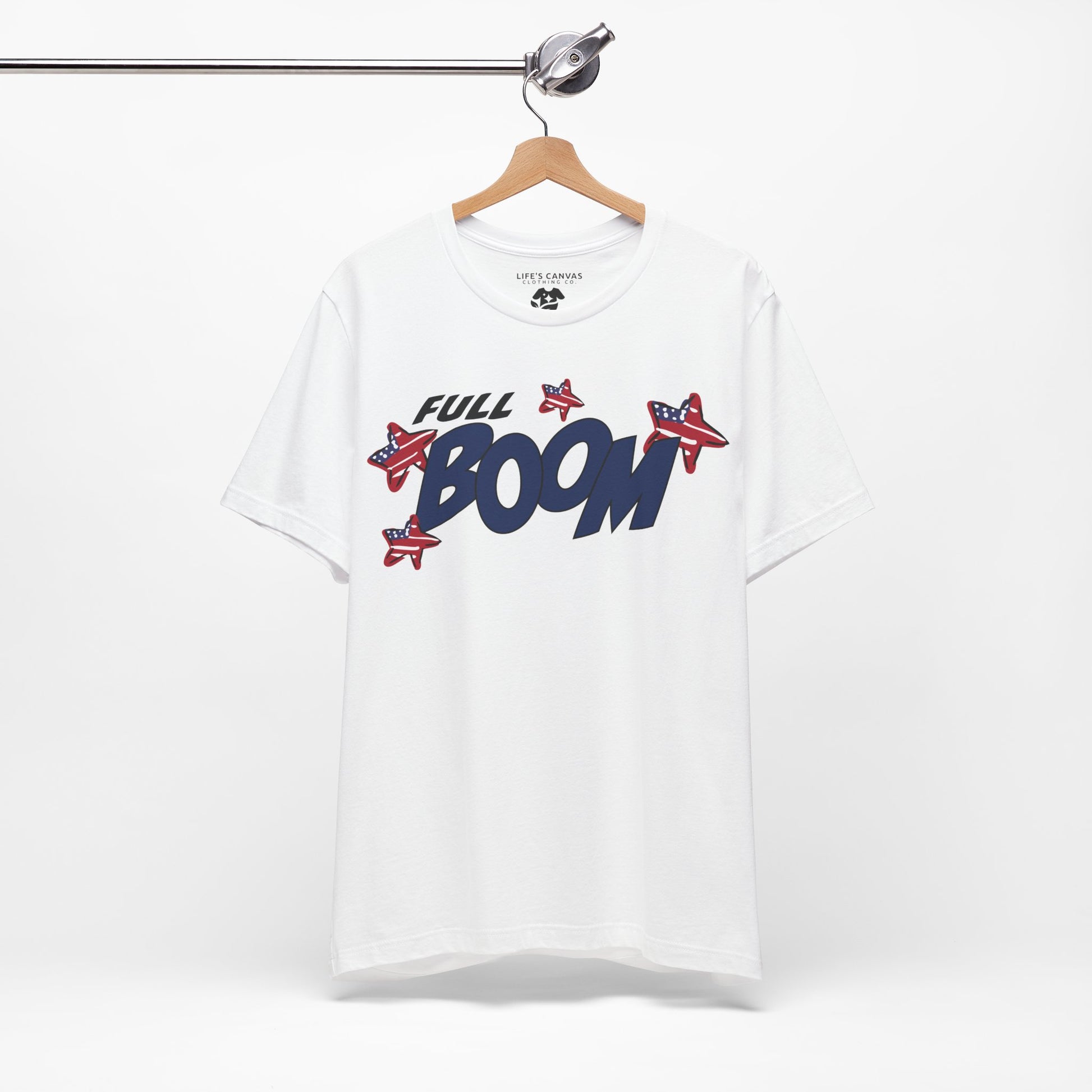 🎇 Bold “Full Boom” lettering with patriotic star design